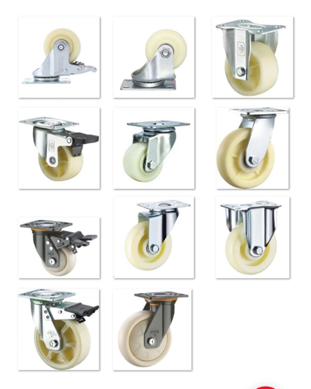 Pulley Caster Wheels are a type of caster wheel that incorporates a pulley or sheave mechanism to facilitate movement or transfer of a load. The pulley mechanism allows for easy and efficient movement of heavy loads by reducing the force required to move them. Pulley caster wheels consist of a wheel that rotates on an axle and a pulley or sheave mounted on the wheel's circumference. A cable or rope is threaded through the pulley and used to pull or push the load. The load's weight is distributed across the pulley and caster wheel, reducing the force required to move the load. Gate Rollers: Gate rollers are devices used to support and guide gates as they slide open and closed. They consist of a wheel mounted on an axle and attached to a bracket or frame that is mounted on the gate. The wheel rotates on the axle as the gate moves, reducing friction and allowing for smooth movement. Gate rollers are commonly used in various types of gates, such as sliding gates, cantilever gates, and overhead track gates. They are designed to bear the weight of the gate and guide it along a track or rail, ensuring smooth and easy movement.
